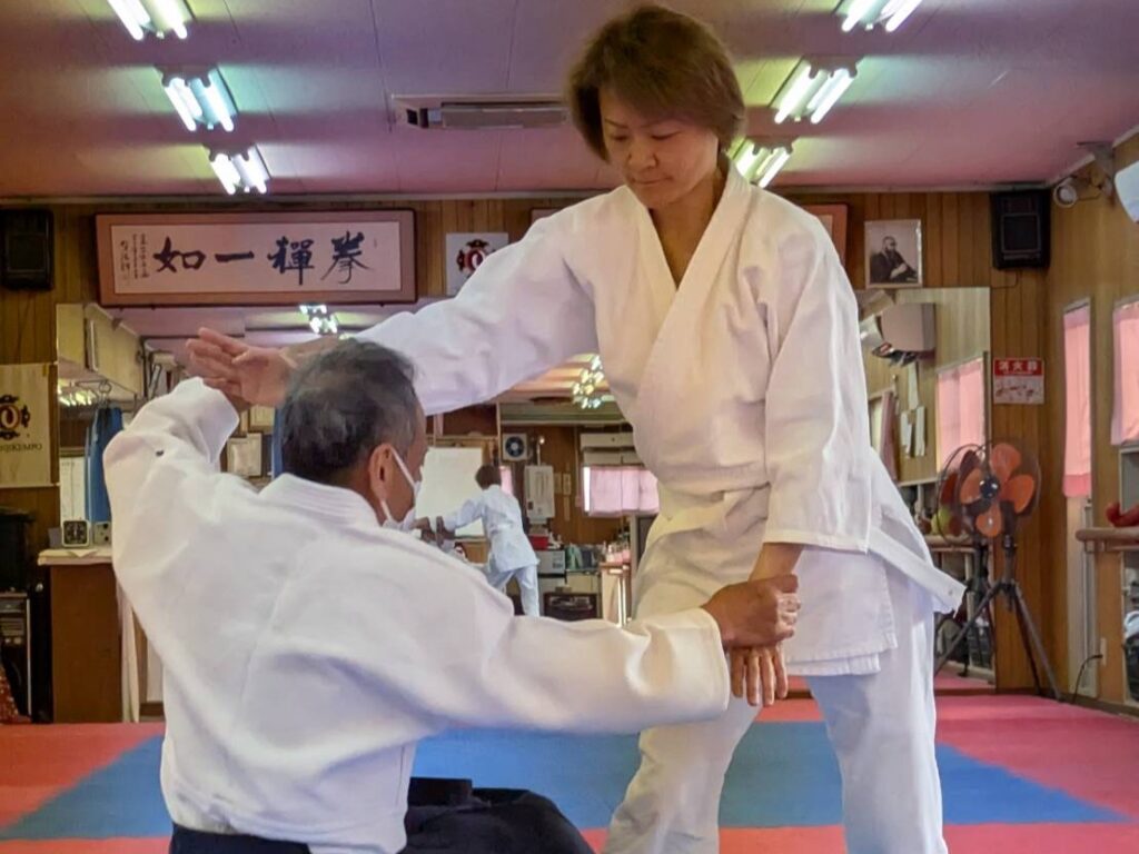 毎回の稽古に護身術に使える技や動きをもりこんでいます。